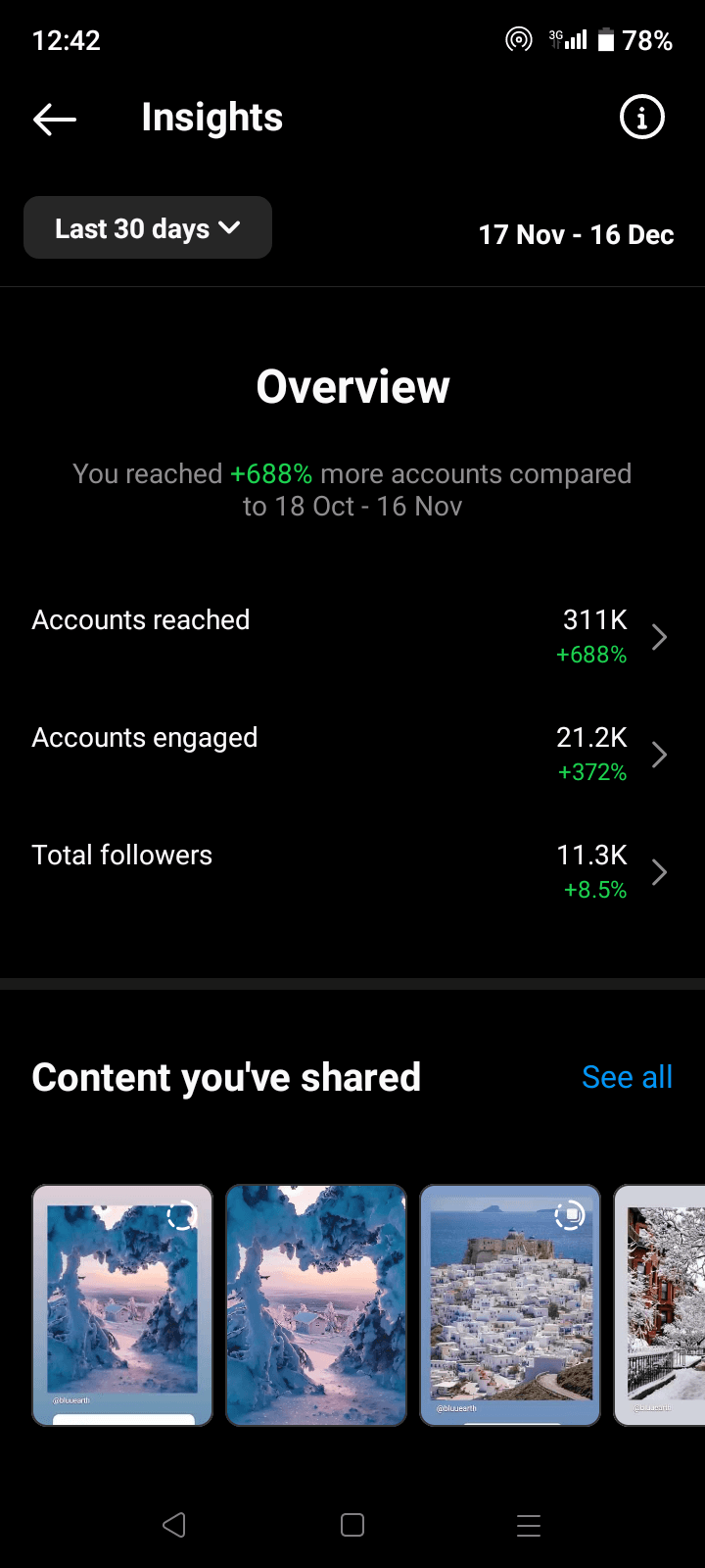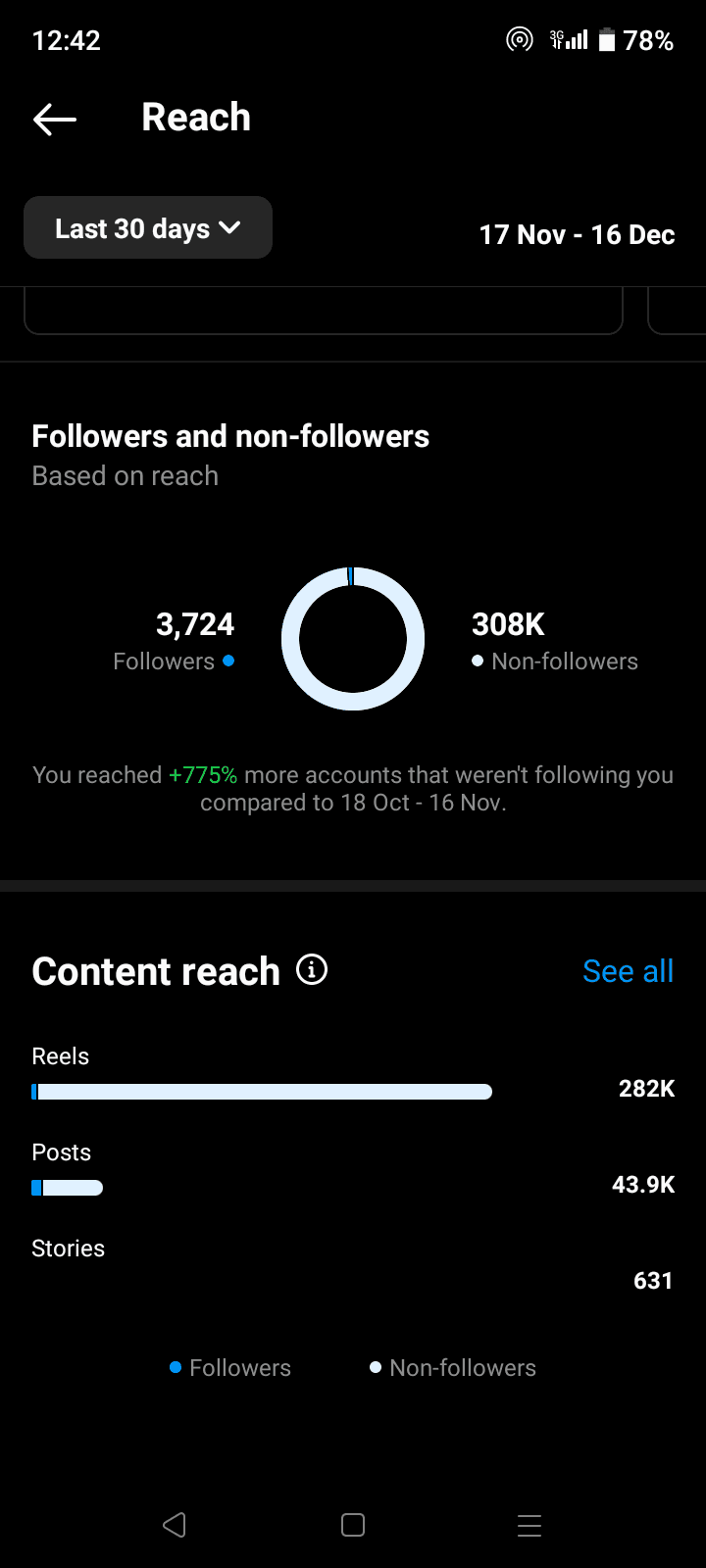 Tested different post types (single images, carousels, occasional reels) to identify formats that maximized reach and saves.