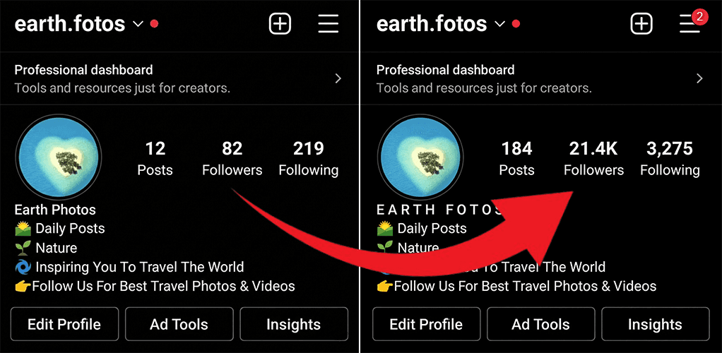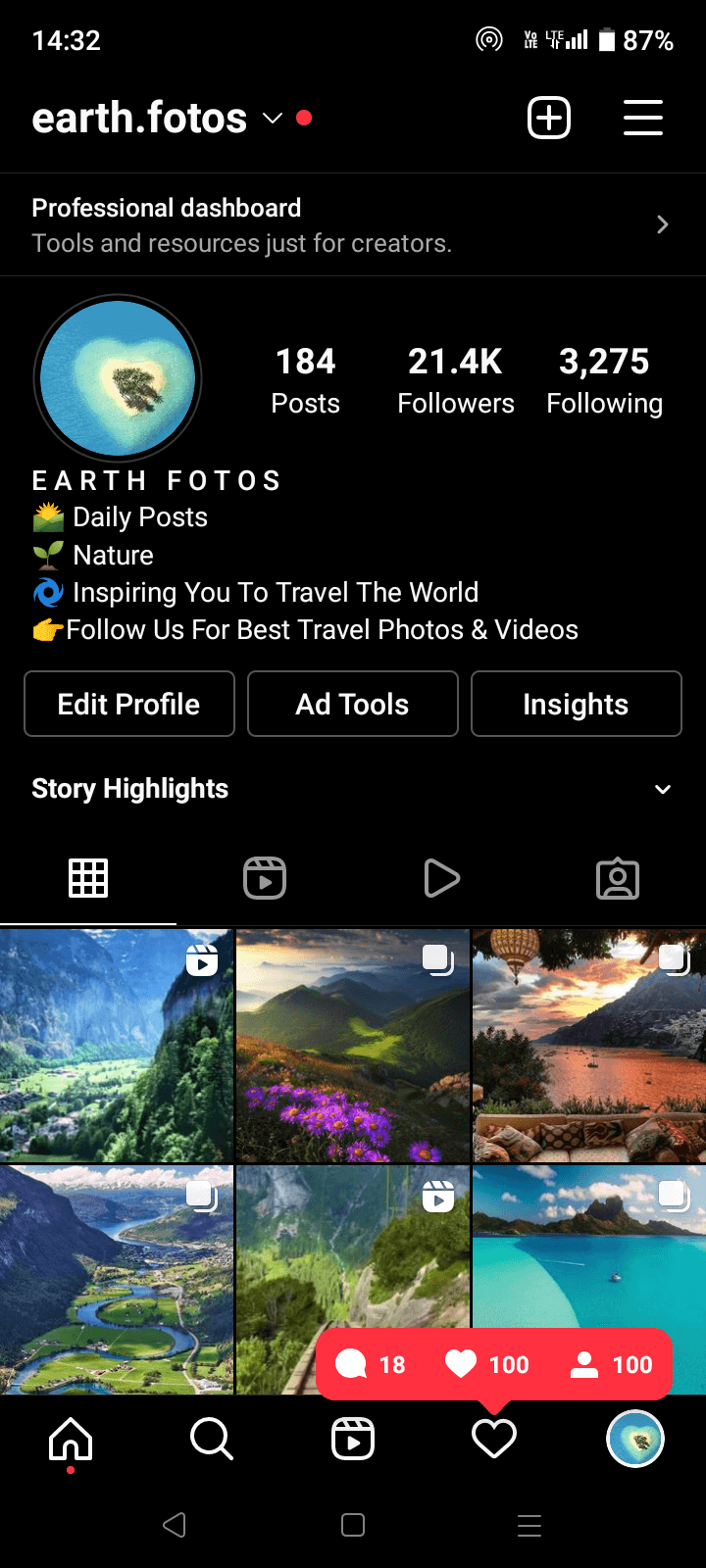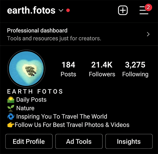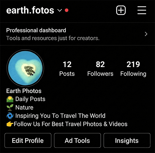 Ensured the account was clearly categorized as a travel inspiration page before scaling content.