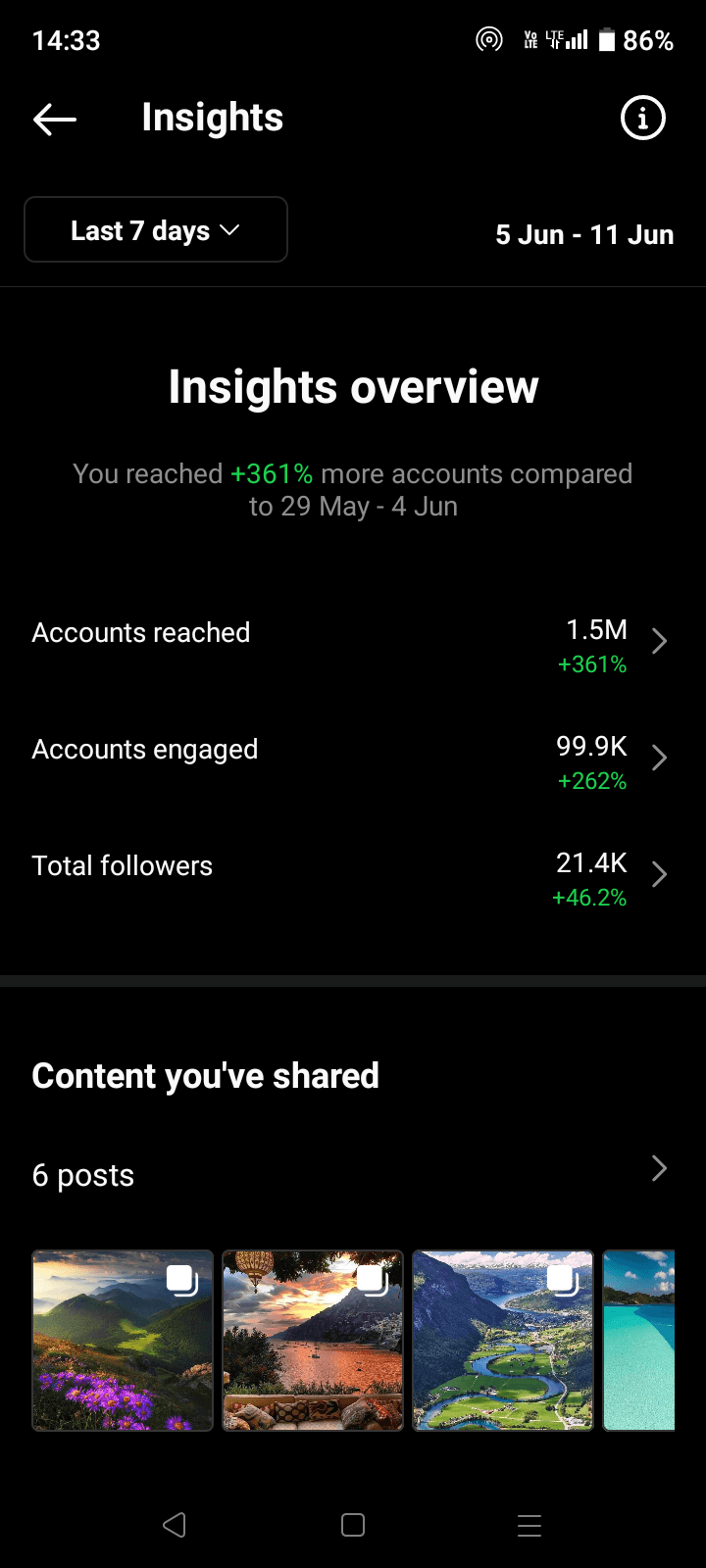 Interacted exclusively with travel, nature, and photography content to train Instagram’s algorithm on the intended visual niche.